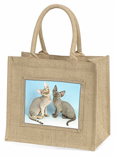 - Two Devon Rex Cats Large Natural Jute Shopping Bag Christmas Gift Idea
